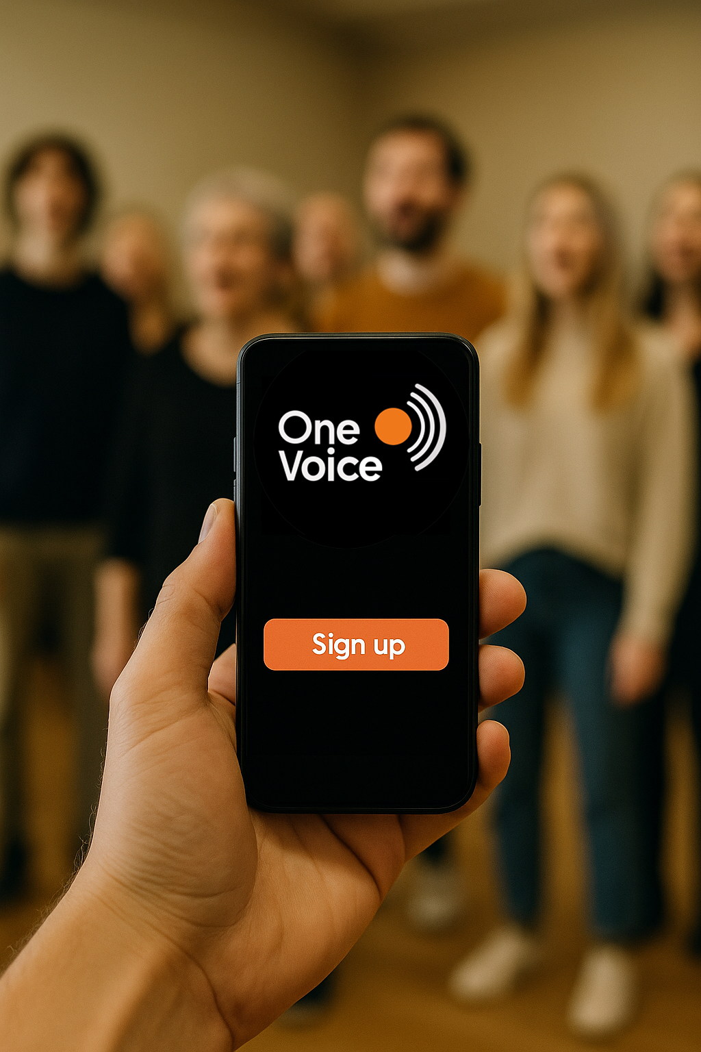 Mit OneVoice findest du bestehende Chöre, offene Singgruppen oder spontane Singtreffen in deiner Nähe.